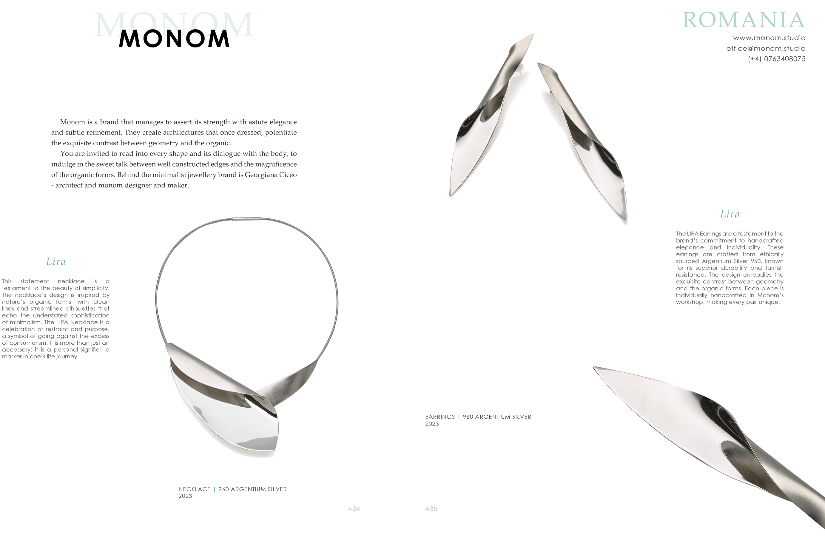 Expoziția noastră a evidențiat două piese centrale din colecția Etala, cerceii Etala Lira și colierul Etala Lira. Aceste creații, manifestând linii fine și o simplitate elegantă, au ilustrat minimalismul arhitectural al Monom. Realizate meticulos din Argentium 960, acestea au reușit să atragă, exprimând un mix de stil contemporan și eleganță atemporală. Dialogul cu un public internațional despre aceste creații au îmbogățit povestea lor cu noi dimensiuni, transformând Milano Jewelry Week într-un capitol valoros în evoluția noastră.